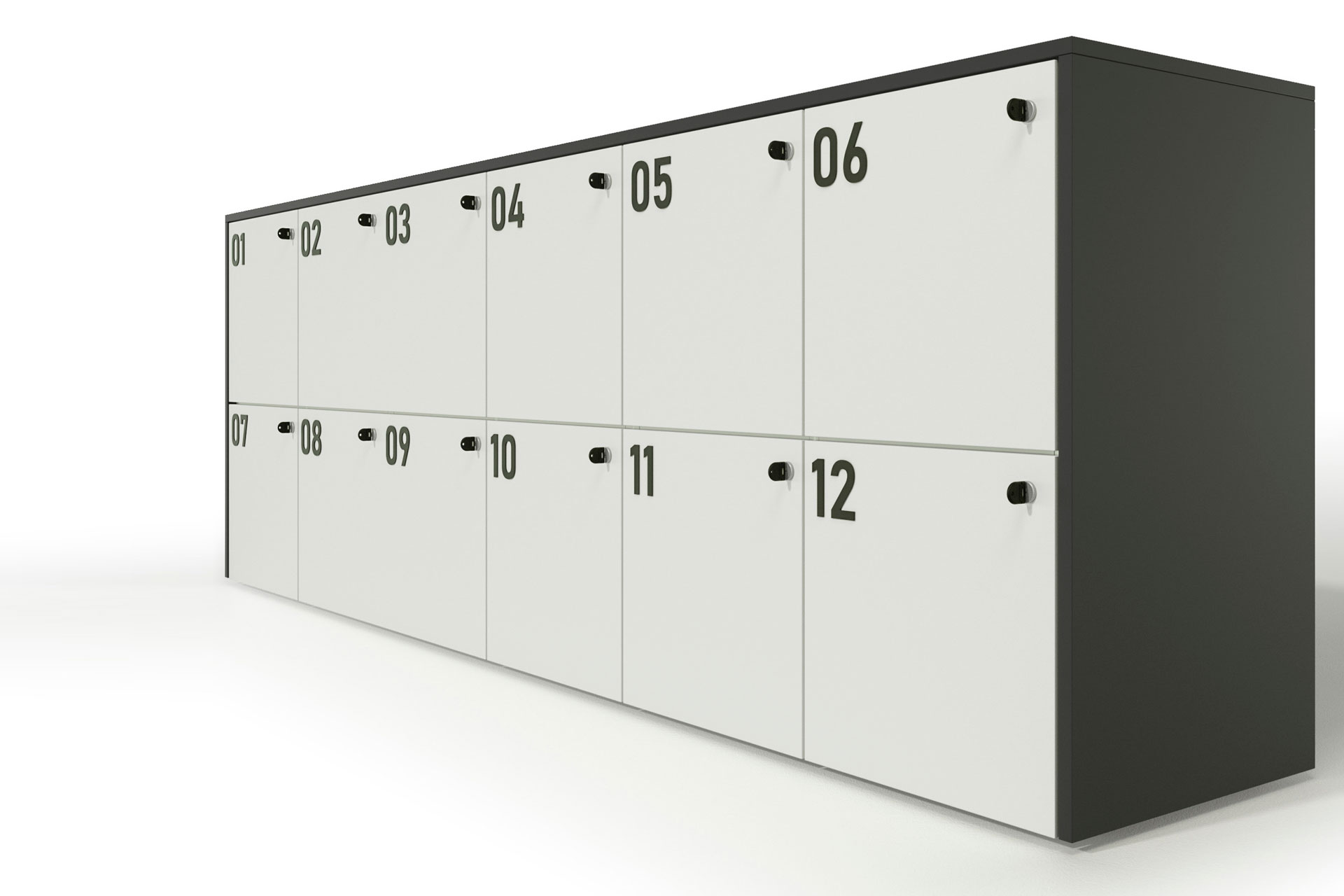 I nostri eleganti contenitori hanno ante con doppio sistema di chiusura, mediante comoda serratura con chiave o codice, . Le cerniere, con apertura a 110º, possono essere dotate di soft-closing opzionale, per chiuderli senza il minimo rumore. A richiesta è possibile integrare anche numeri da incollare tramite biadesivi dedicati.
