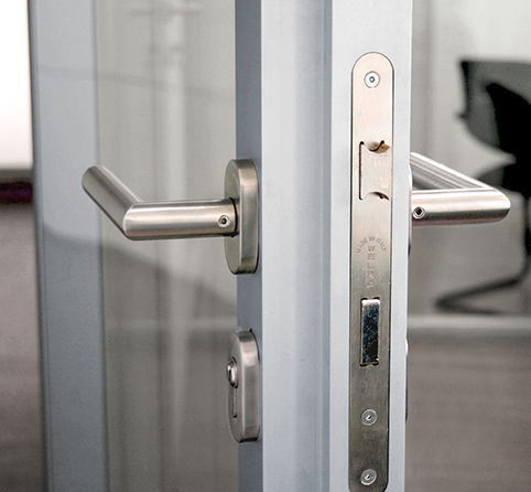 Parete divisoria in cristallo doppialastra con correnti superiori e inferiori in alluminio con sezione p.75 x h. 47 mm. La struttura perimetrale consente una regolazione totale dei vetri di 40 mm. Pareti vetrate con vetri di spessore 10 o 12 mm. In prossimità dei nodi in linea, d’angolo e incroci, le lastre vengono giuntate dei profili in policarbonato trasparente. Porte a battente nelle versioni in cristallo, intelaiate doppio vetro o cieche. La parete Biglass è un programma di parete completo ed altamente performante sia dal punto di vista funzionale che da quello estetico.