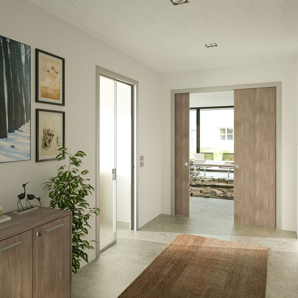A far parte dell’ampio catalogo di serramenti di AlparSystem è la linea di porte interne. Un catalogo variegato, con proposte personalizzabili, esteticamente eleganti e realizzate con materiali di prima scelta. Sono soluzioni progettate per abitazioni e spazi di lavoro che necessitano di porte interne in grado di isolare in maniera ottimale ambienti e stanze. La nostra proposta spazia a partire dalle semplici porte in pannello tamburate, alle porte con imbotte in alluminio e ante in vetro temperato.